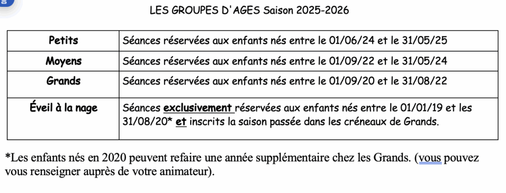 * : Les créneaux seront ouverts en demi-année en fonction du nombre d’inscrits